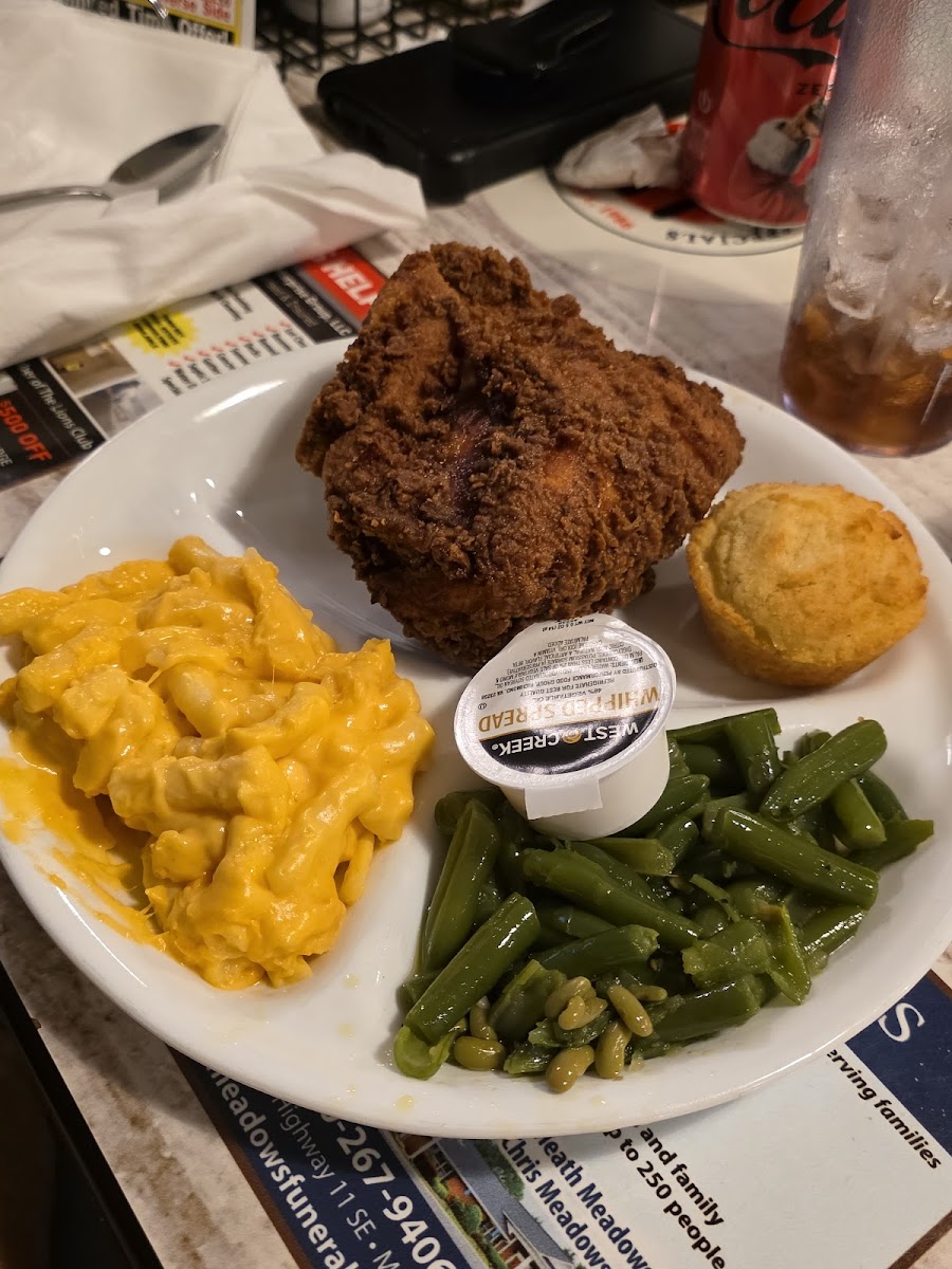 The food was very good. My family had the country fried steak, salmon, pork chops, chicken and it was all delicious; even the green beans. Also, the best sweet tea I have ever had! My son wanted to go back the next day! Lol..Will be back again to try many more things from the menu.